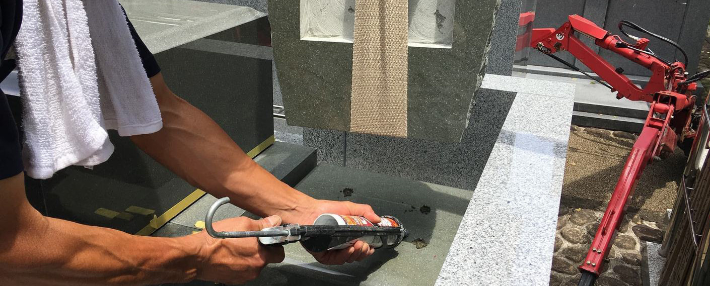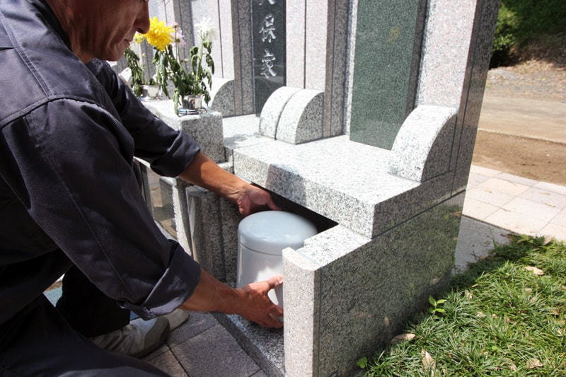 お墓を建立して石屋の仕事が終わるわけではありません。お墓造りは大切なご家族を納骨するために供養石塔を用意し、最後に納骨棺に埋蔵することで終わりになります。石善ではベテランの納骨スタッフが滞りなく納骨式が執り行えるようにお手伝いをしています。