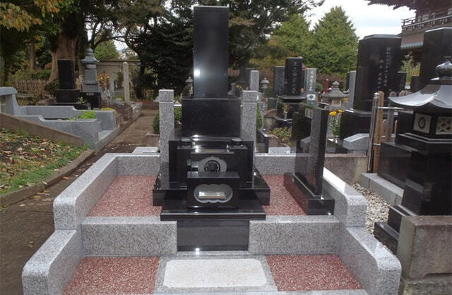 墓石はきれいにして土台などの一部だけを変更することで費用を抑えています。フロア型の外柵にし、床面を赤い仕上げにすることで印象が大きく変わったいます。