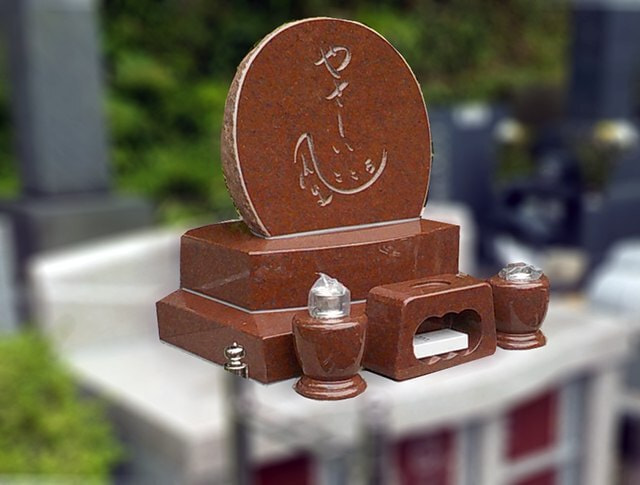 生前建墓(寿陵)案件。明るく優しい雰囲気を、というご要望を受けて角ばったものでなく円をイメージした設計しました。正面文字は施主様のご要望を受けてご住職が筆耕したものです。